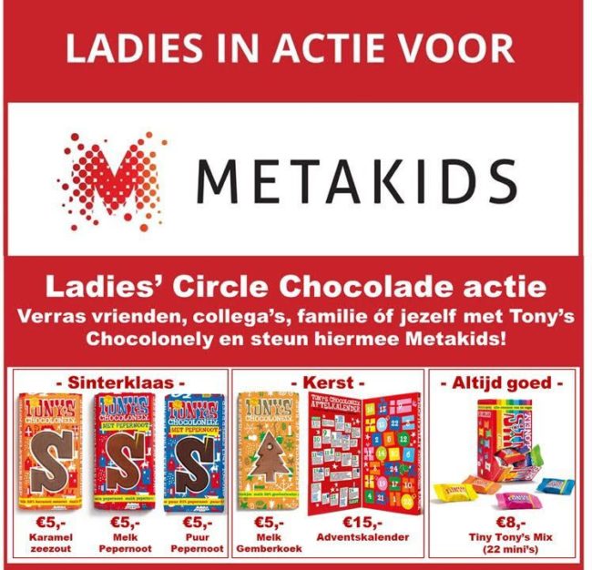 We hebben een super lekkere actie voor het goede doel Metakids. De feestdagen staan straks weer voor de deur en wij verkopen Tony Chocolonely. En een deel van de opbrengst…